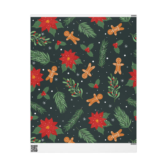 Wrapping Paper - Whimsical Holiday Ginger Bread Men and Holly Leaves